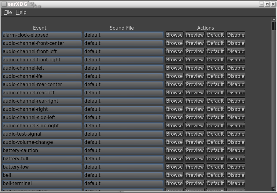 A: Then for God's sake why haven't you? Have you tried creating a full sound theme? Its not just awful...its abyssmal. I know its not rocket science...but its also a lot of legwork for very little payoff. It took me less time to write this program than it would for me to hand-craft a complete sound theme (there are currently 130+ sound events supported by the XDG spec...that's a whole lot of renaming). While I don't expect most people will use it to map all those events...it may make things just easy enough to inspire more people to create more pre-packaged sound themes :)
